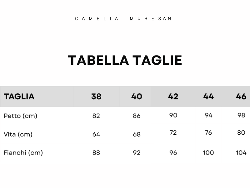 E’ davvero molto facile prendere le misure da noi richieste, per andarle a confrontare con la nostra tabella misure e scegliere la taglia giusta per te.